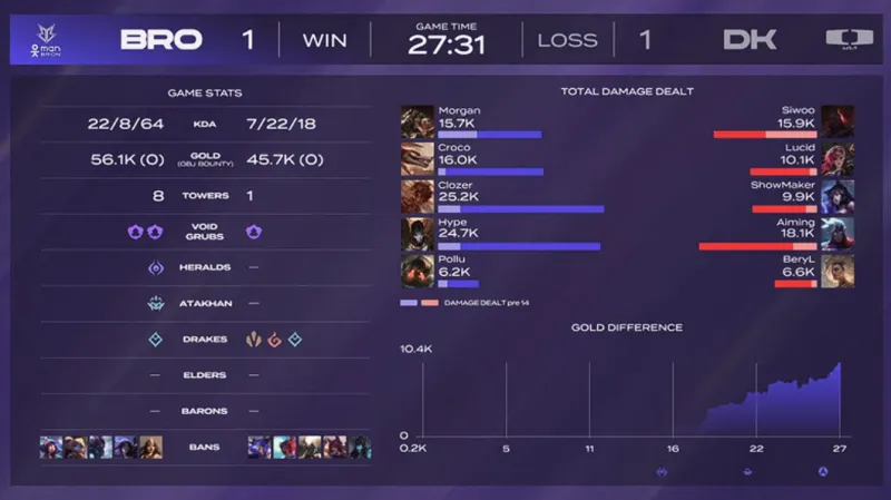 BRO 1-1 DK:上辅状态低迷惨遭突破,BRO强势扳回一局