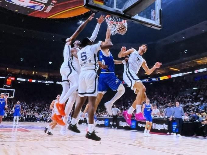 赛后,魔术队官方晒出了上面那张比赛照,并配文写道:“安东尼-布莱克,回敬。”